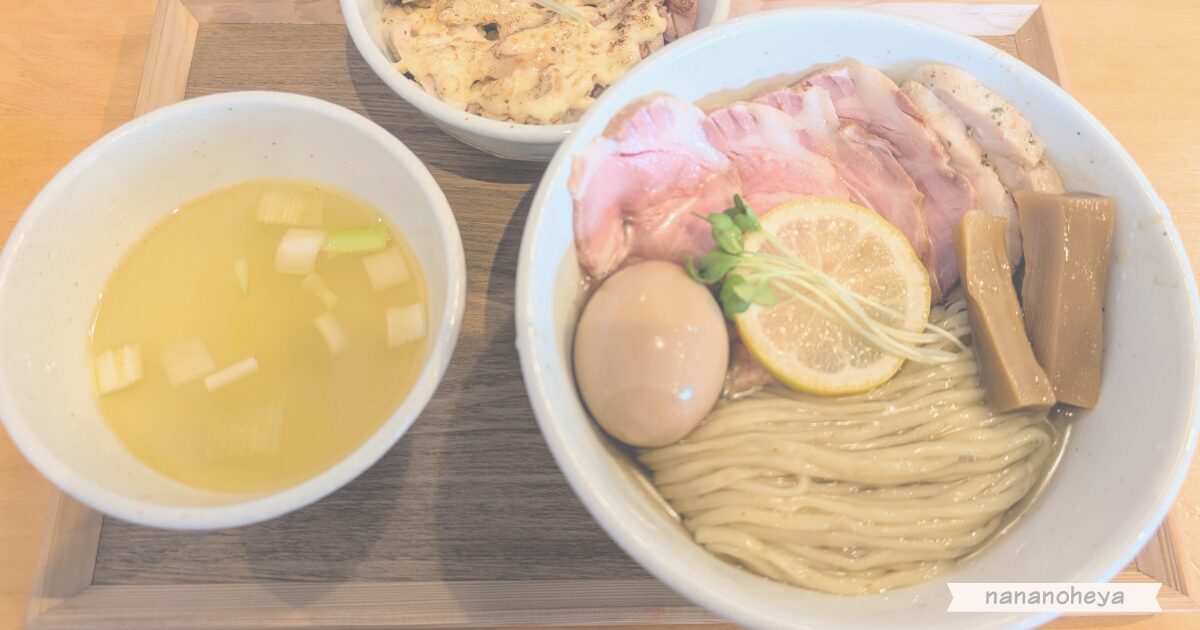 今回は「特製昆布水つけ麺(塩)」と「炙りチャーマヨ飯」を注文しました。